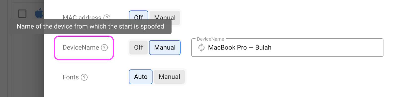 Besides standard elements like the user agent and time zone, the browser alters WebRTC, Canvas and WebGL values, HTTP headers, fonts and even device names. No competitors offer that last feature.