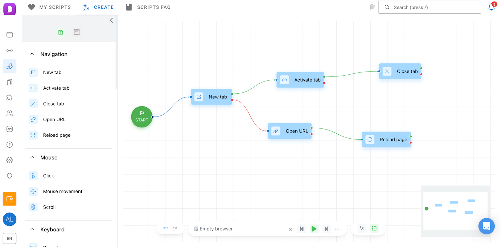 As we have already stated, Dolphin Anty places great emphasis on workflow convenience. That’s why it includes tools for process automation. Using these features you can reproduce actions across multiple profiles without risking detection by antifraud systems.